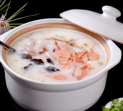 2.將鍋置火上,放入適量清水、凈雞、料酒、先用旺火煮沸,再改用小火煨煮至雞肉熟爛,把雞撈出,加入粳米,慢煮至粥。