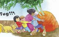 在活動中,培養(yǎng)孩子只有付出勞動,才能得到收獲的意識;培養(yǎng)孩子大膽的敢說、想說、樂于說。并通過活動豐富幼兒詞匯:拔、洗、切、炒、吃...
