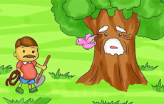 一條小河邊有一棵老樹孤零零地站在那里!老樹枝繁葉茂、軀干粗壯,要好幾個人手拉著手才能圍得住它。它身上有深深的痕跡,就像它的經歷一樣!原來在很多年前,老樹身邊有好多...